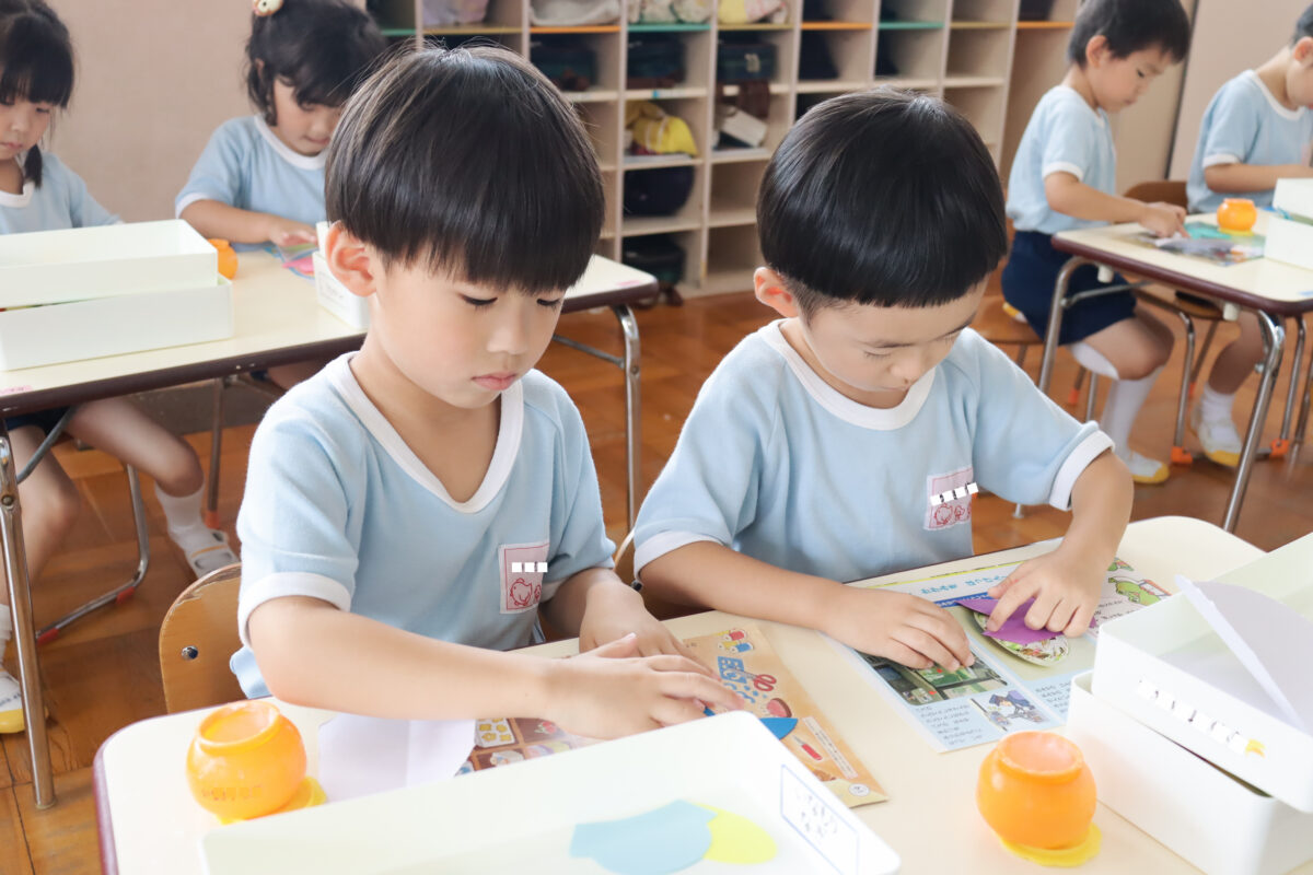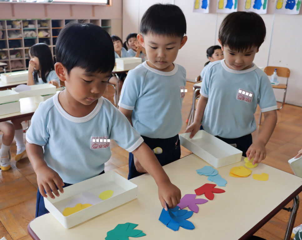 壁面製作「カモメ」 2024.7.16 夏休みを前に年中組さんは 壁面製作を行いました。 カモメの身体に 足やそれぞれ好きな色のスカーフを貼って くちばしと帽子を付けて… 最後に手形で手を作って完成です。 教室に飾られるのが楽しみですね。
