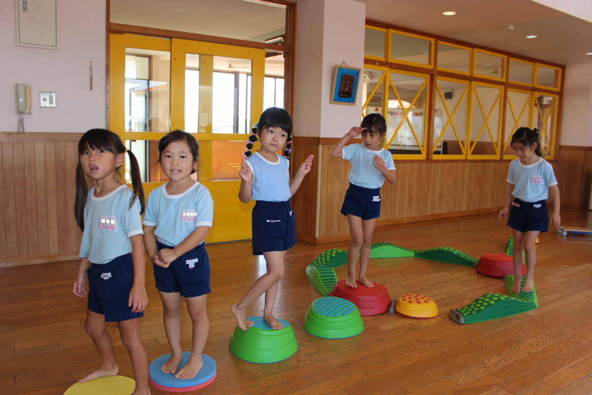 サーキットあそび 2023.9.26 年長組さんのお友だちが遊戯室でサーキット遊びをして遊んでいましたよ。 バランスをとったり、跳んだり、平均台を渡ったり 元気いっぱい体を動かして遊びました。 何度もコースを回って楽しい時間を過ごした年長組のお友だちでした。