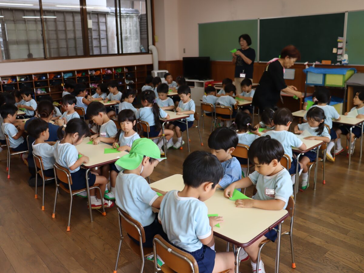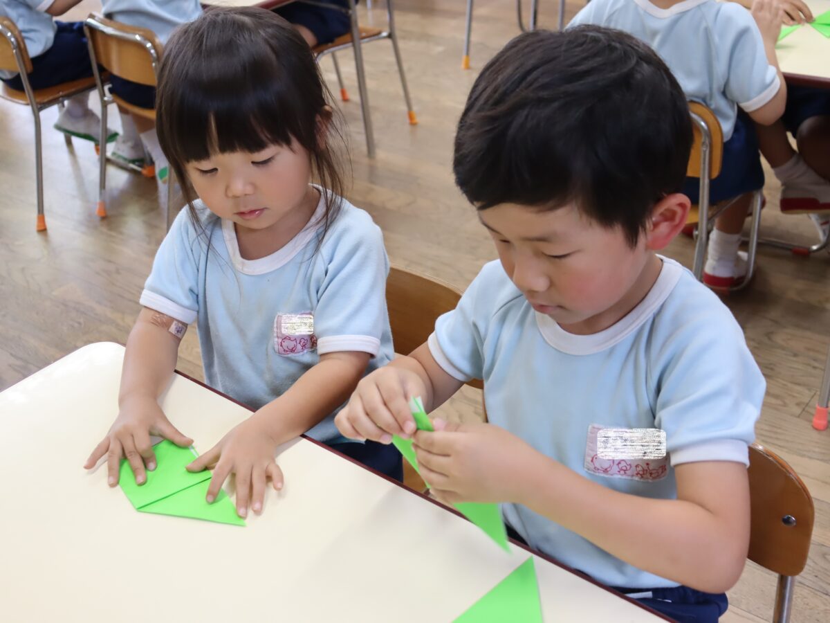 この日は折り紙でバッタを折りました。