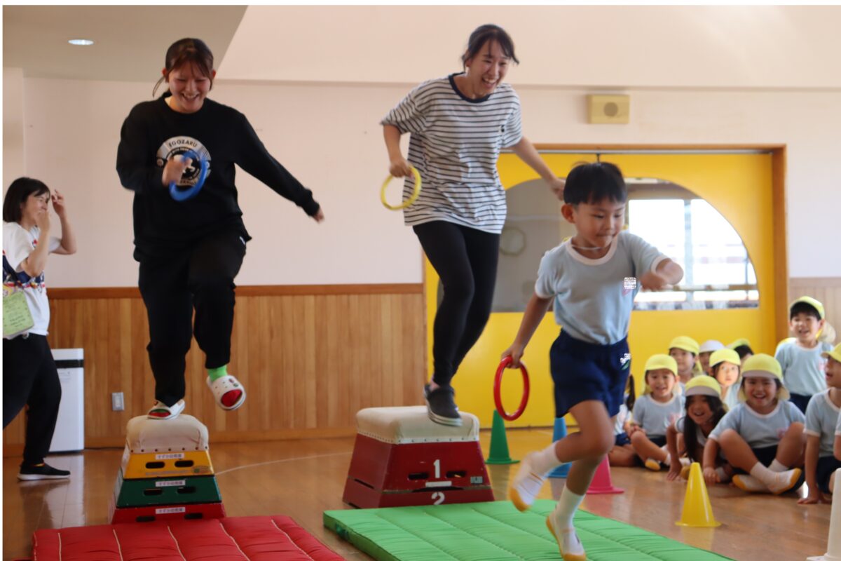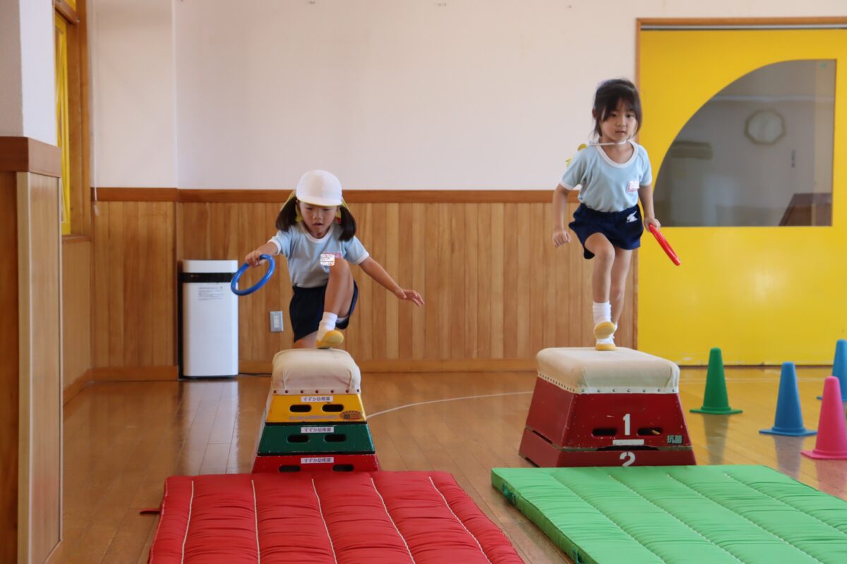 もうすぐ運動会🚩 (すずか幼稚園) 2025.10.6 運動会まで1週間をきりましたね。 子どもたちは毎日一生懸命練習に取り組んでいます。 今日は年長組さんが 親子競技「山あり 谷あり」の練習をしましたよ。 数々の障害物をクリアしながら クラスでバトンをつないでいきます。 さぁ、アンカーは先生と勝負! 誰が勝つのか、大盛り上がりの一戦となりました🔥 本番ではおうちの方と一緒にゴールを目指します。 今日の練習を忘れず、本番でも頑張ろうね😊