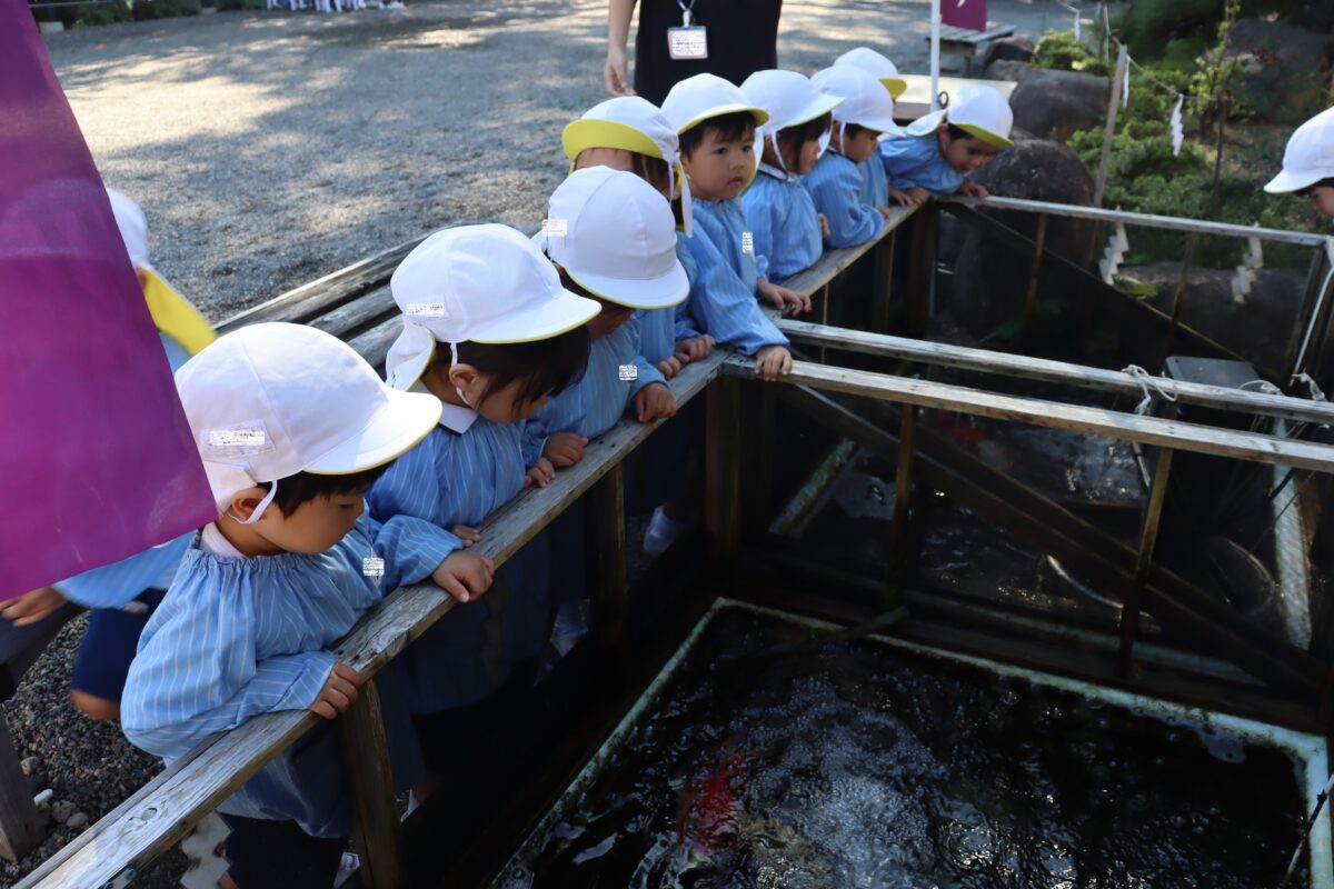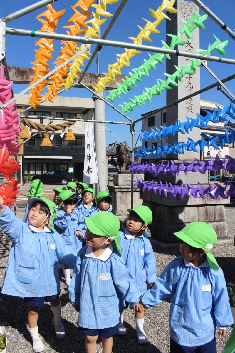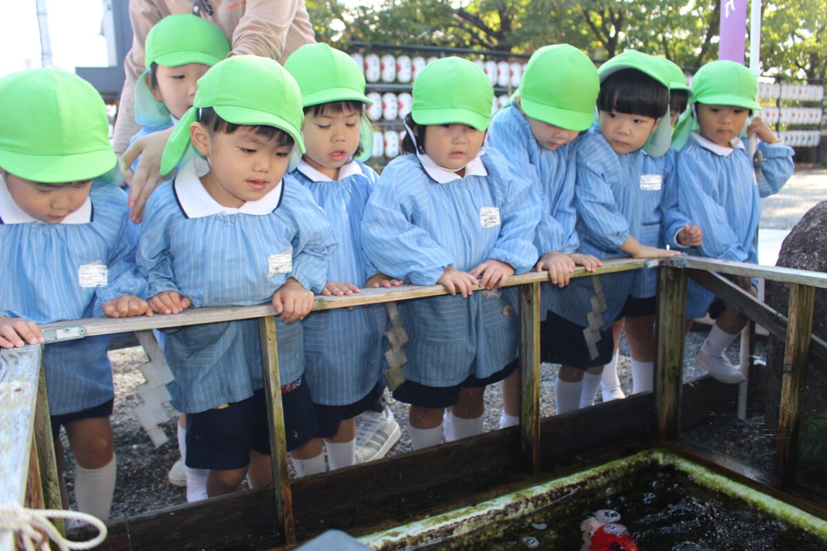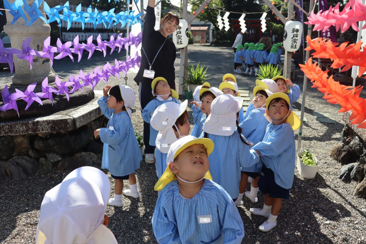 お散歩 (すずか幼稚園) 2025.10.23 今日は昨日とは打って変わって ぽかぽかと暖かい日になりましたね🌞 年少組と年年少組のお友だちが 秋の遠足の練習がてら 園の周辺をお散歩しました。 近所の神社には 鯉がいたり、風車が飾ってあったり、 子どもたちの目を引くものがたくさん✨ 27日は神戸公園まで遠足です。 晴れるといいね😊