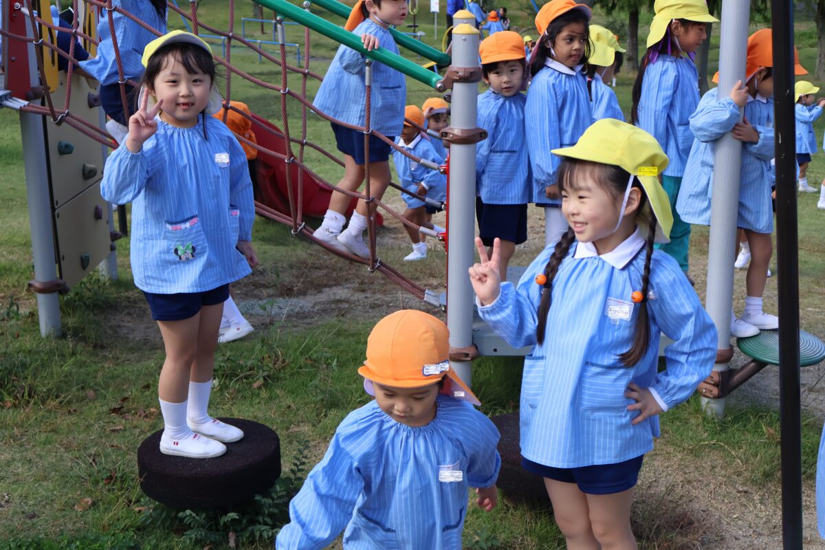 秋の遠足🍂 (第2すずかきしおか幼稚園) 2025.10.29 10月28日 子どもたちが楽しみにしていた遠足がありました。 バスに乗って、楠中央緑地公園に行きましたよ。 お天気が心配でしたが、 パラっと振った程度で、 公園で思いっきり体を動かして遊ぶことができました! 公園に着くと、まずは散策。 その後、お楽しみのお弁当とお菓子🍴 みんなで食べるともっと美味しく感じますね😊 遊具で遊び始める頃には お日様も顔を出し、 ブランコやすべり台など遊具で遊んだり、 追いかけっこをしたり、 思う存分遊ぶことができました✨