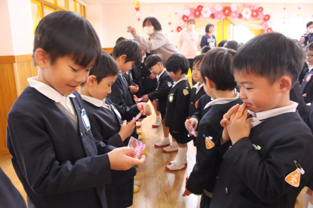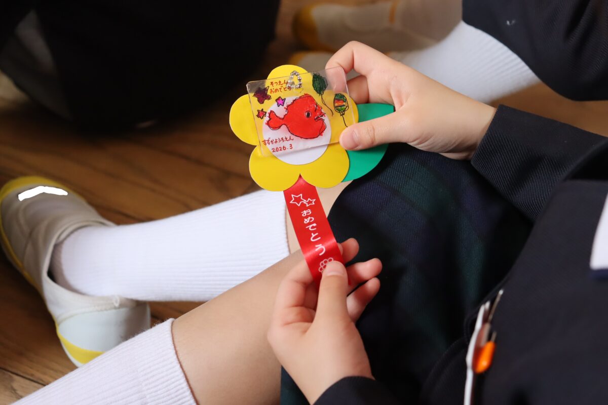 もうすぐ卒園ですね😢 (すずか幼稚園) 2026.3.13 ついに来週の水曜日は卒園式です。 年長組のみんながこの幼稚園で過ごす日々も あとわずかとなりました。 今日は年中組さんが年長組さんに 卒園のプレゼントを渡しました。 今までお世話になった感謝の気持ちを込めた 手作りのプレゼントです🎁 喜んでもらえて、年中組さんも嬉しそうでした✨ その後、お給食も一緒に食べましたよ🍴 年中組のみんなは いつも優しいお兄さんやお姉さんとの給食に 終始嬉しそうでした😊